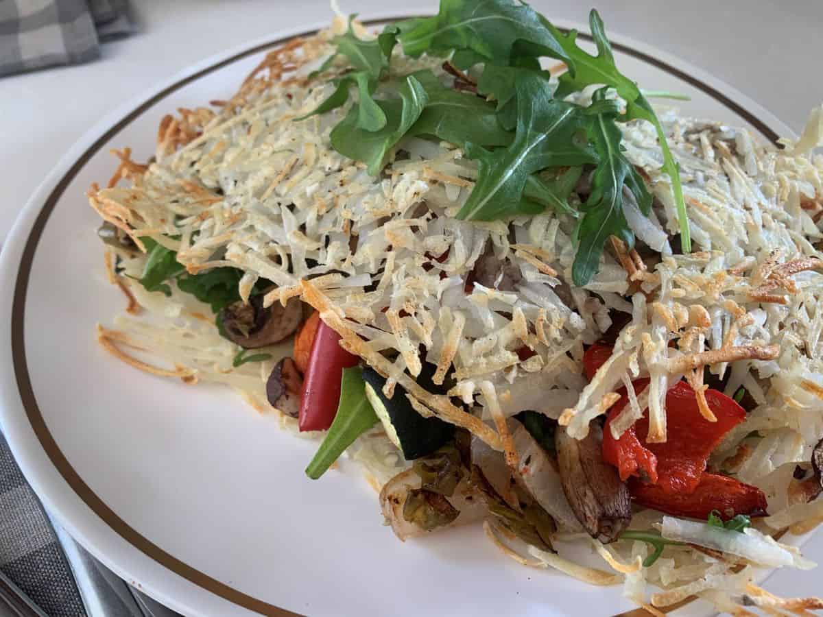 ohiocook posted: " This sheet pan breakfast is so simple and tasty and made even easier with a few short cuts. Yummy potatoes that are just crunchy enough, loaded with roasted veggies and smashed creamy black beans.Sheet Pan Hash Brown Veggie Omelette | V, GF, oil free"