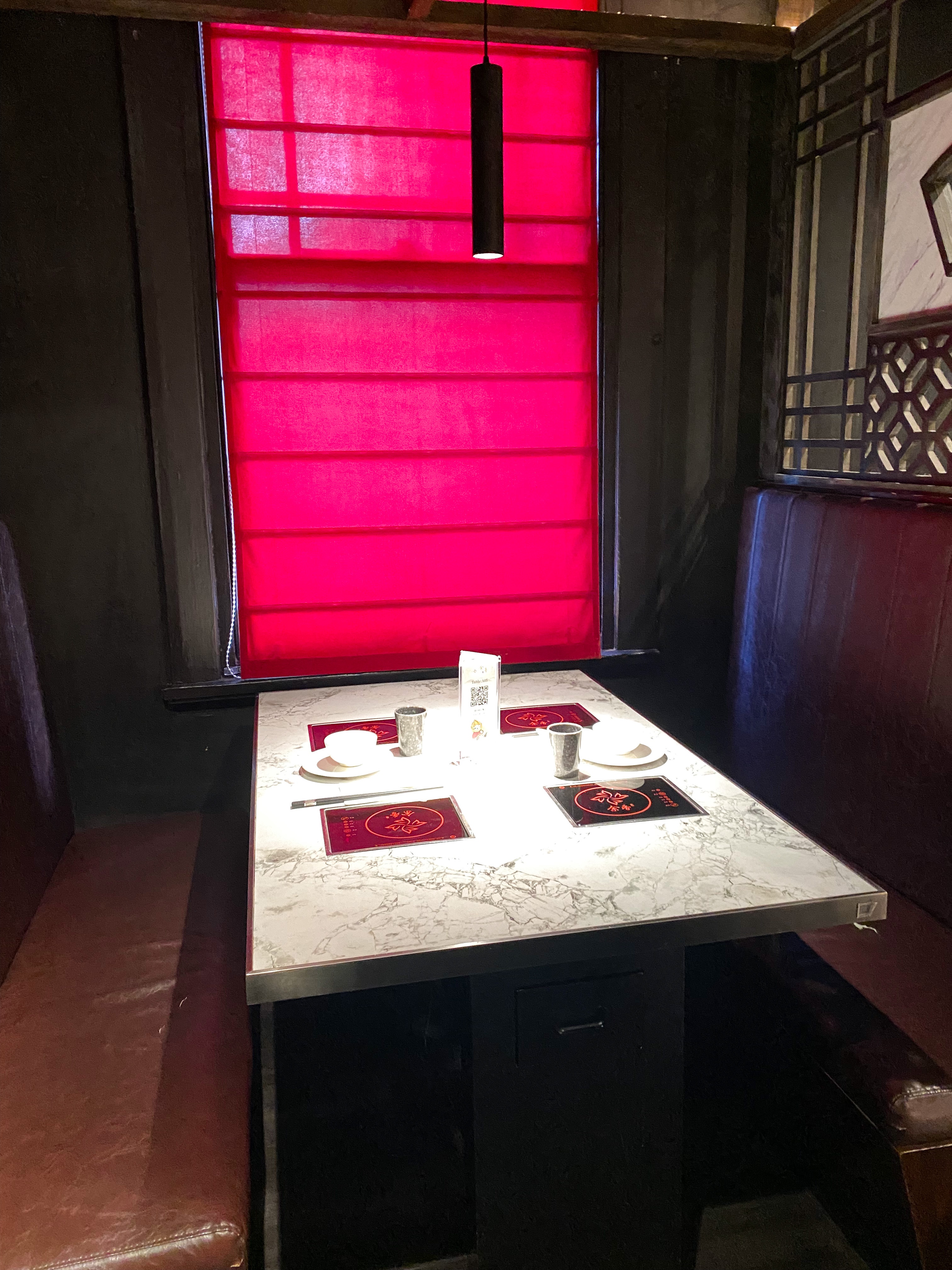 YX Mini Hotpot can be found in the upper level of the building accessed via Hay Street. The restaurant is sophisticated with multiple booths made of dark wood and marble tabletops, each with individual stoves to cook your hotpot.