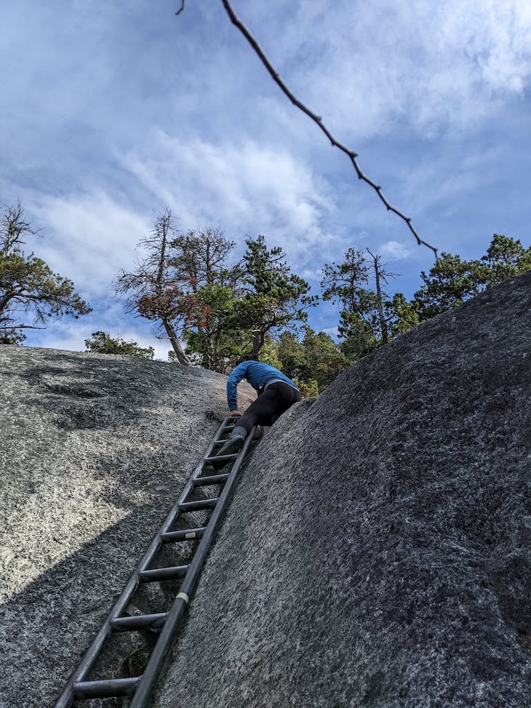 After an intermission to conquer the ladder, we continued on to the base of the summit to find a rock scramble. We did not get this far to not summit the peak but the remaining portion was daunting. There were rock slabs on an incline with chains and ladders to help traverse certain portions and the top park was a rock scramble to the summit.