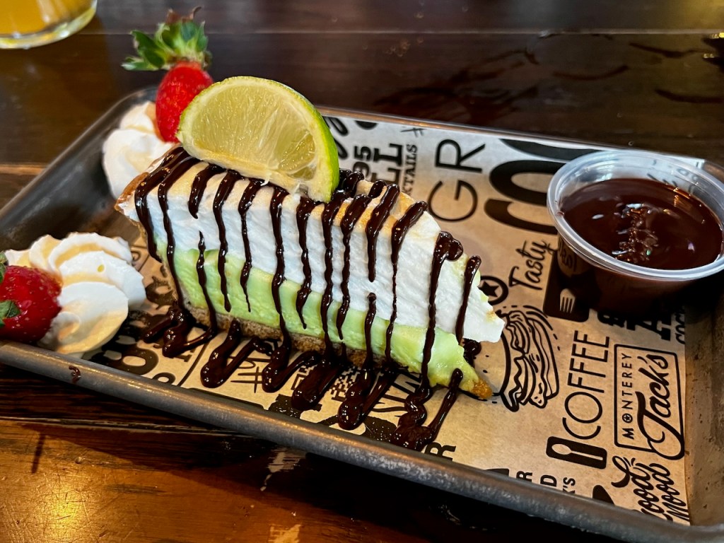 Key Lime Pie £6.50 Florida key lime pie with liquid Belgian milk chocolate churn