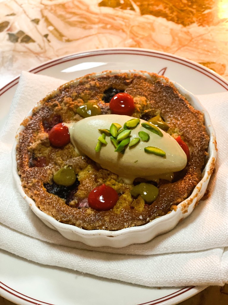 Whilst there are 5 dessert options, the stand out was something unexpected for me, not something I'd ordinarily order. Their 'Clafoutis' is unreal! A warm baked tart, quite cake like, nice and sweet with berries, pistachio praline ice cream and pistachio.